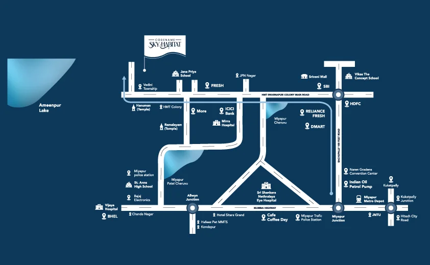 Sky Habitat isn’t just a home, it’s an elevated experience. With skyline-defining architecture and sky-high amenities, it transforms Miyapur into your personal Sky Habitat. Here, you don’t just live amidst the clouds, you rise above it, in finely crafted homes designed for life at a higher level.